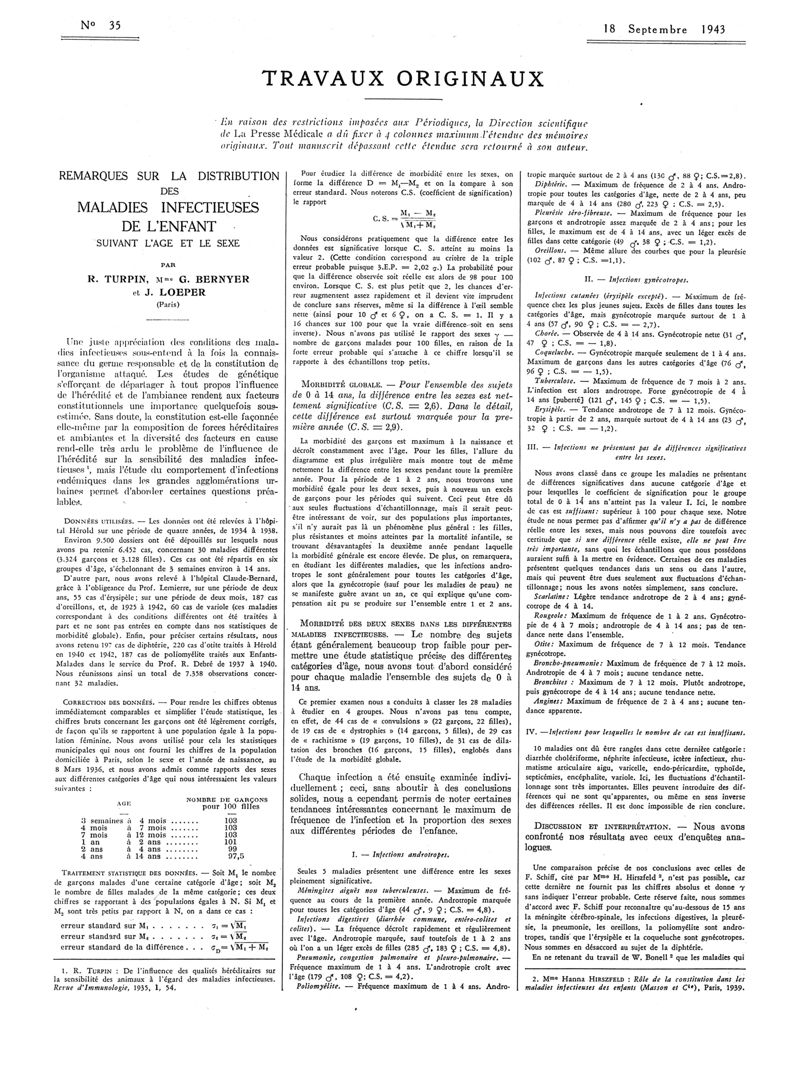 1943, Articles originaux. -
