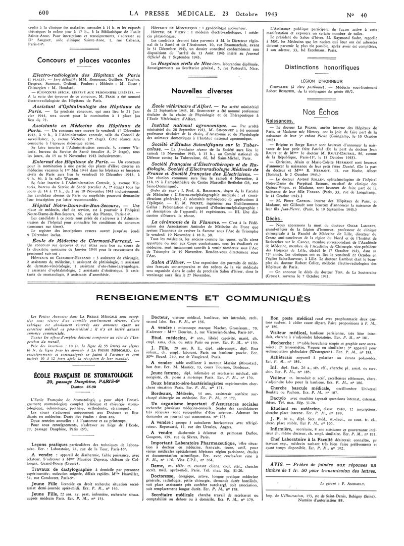 1943, Articles originaux. -