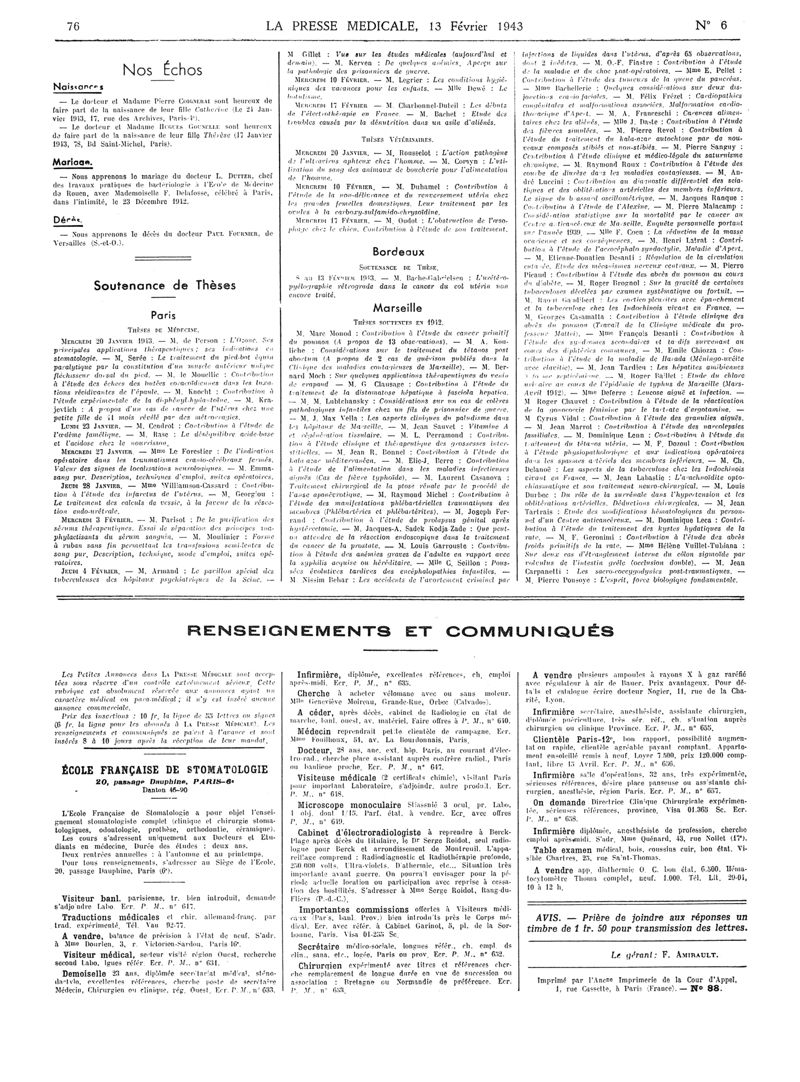 1943, Articles originaux. -