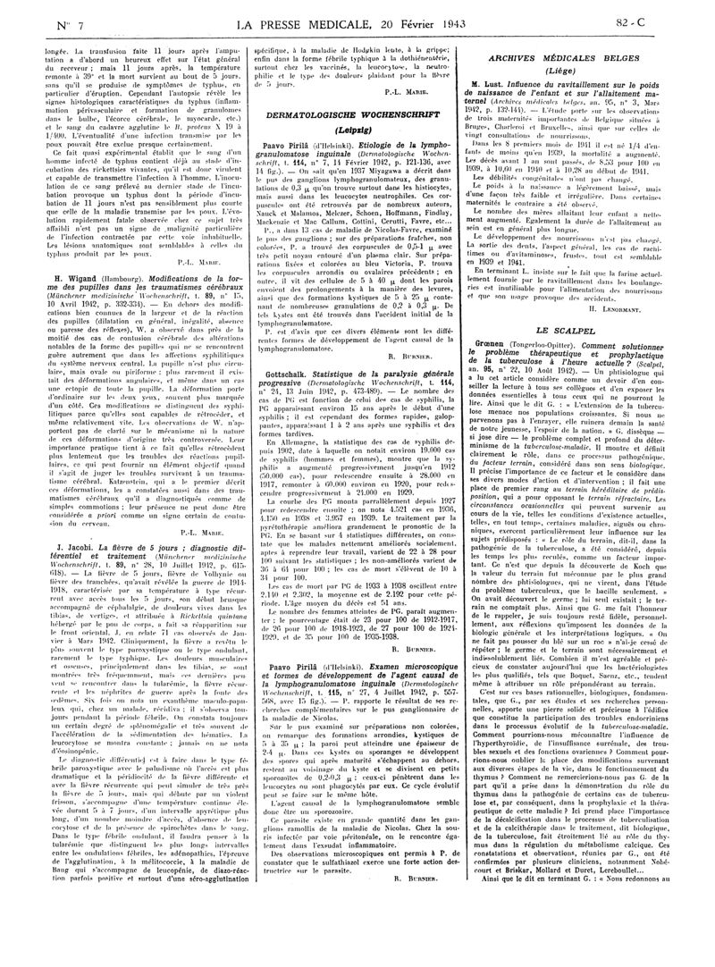 1943, Articles originaux. -