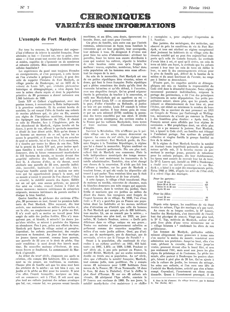 1943, Articles originaux. -