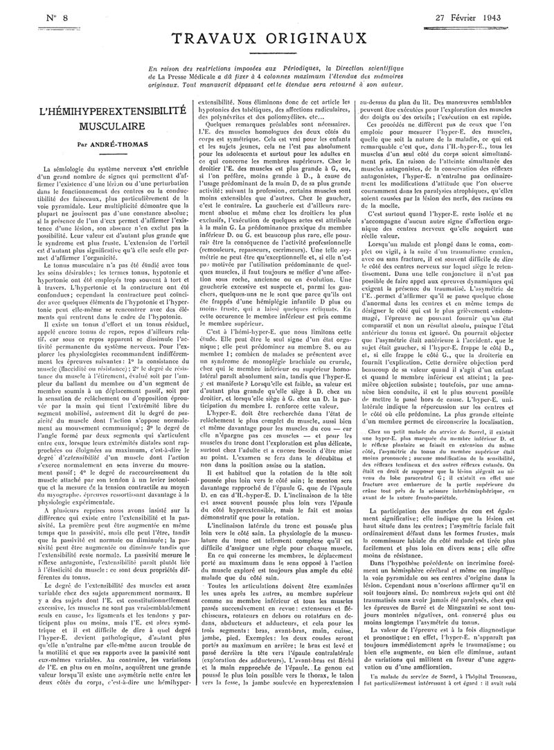 1943, Articles originaux. -