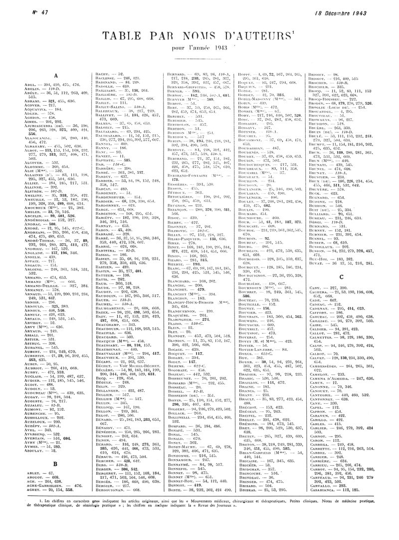 1943, Volume de tables. -