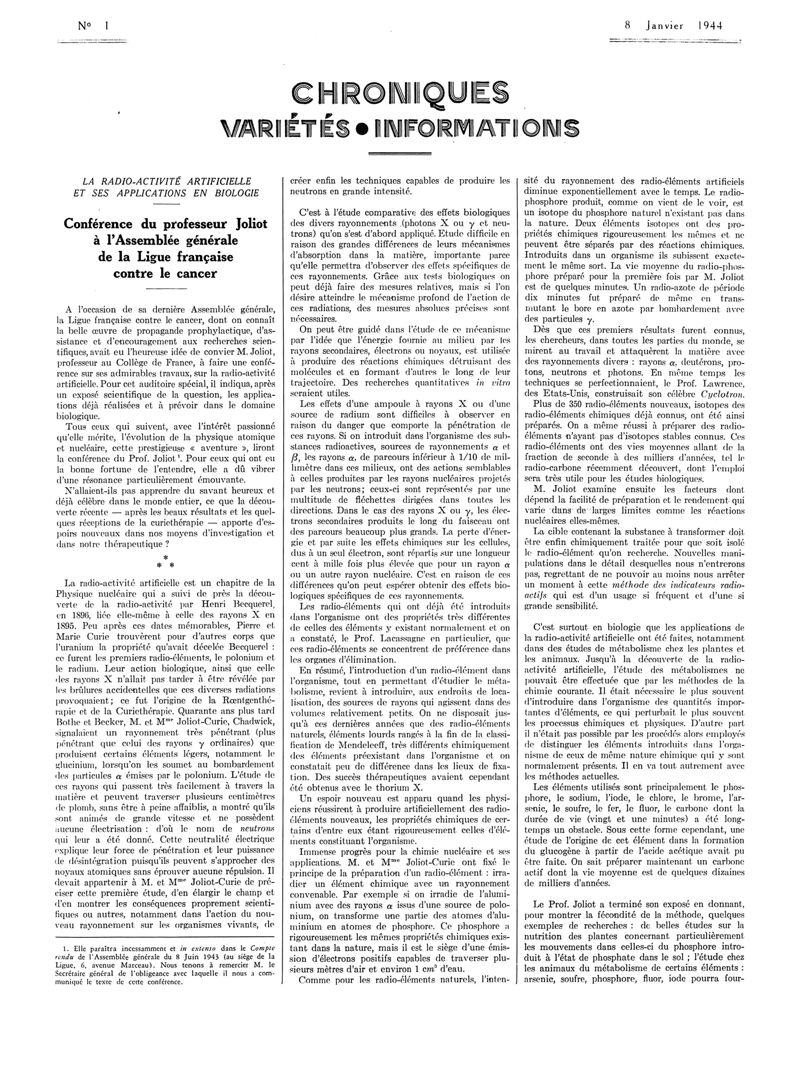 1944, Articles originaux. -