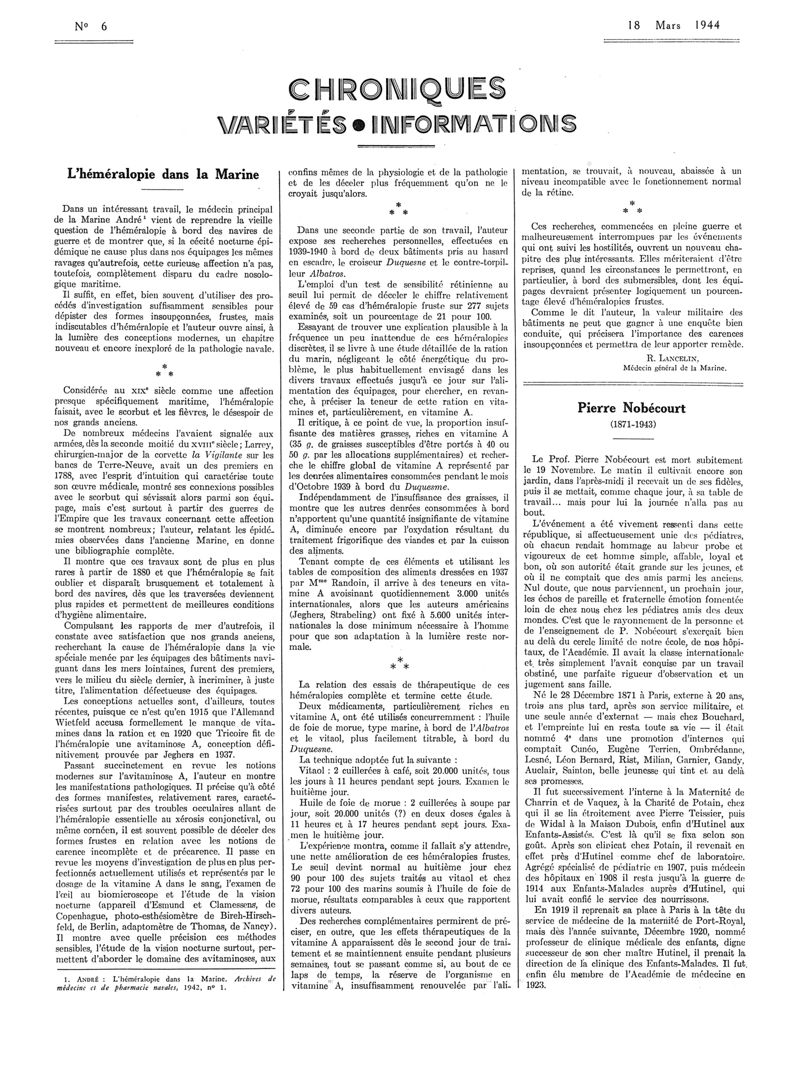 1944, Articles originaux. -