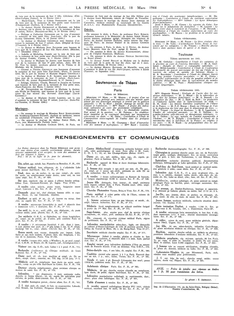 1944, Articles originaux. -