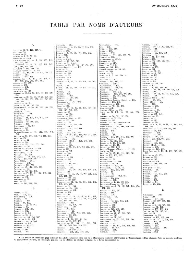 1944, Volume de tables. -