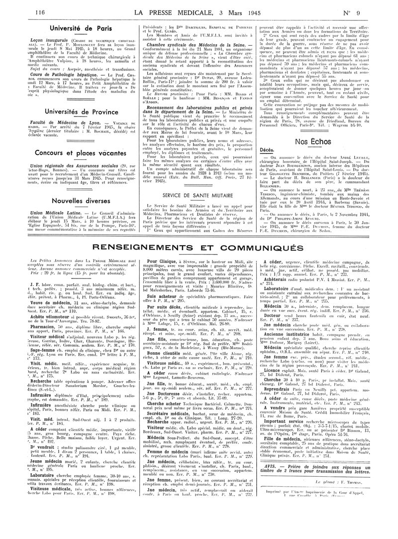 1945, Articles originaux. -