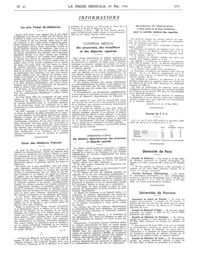 1945, Articles originaux. -