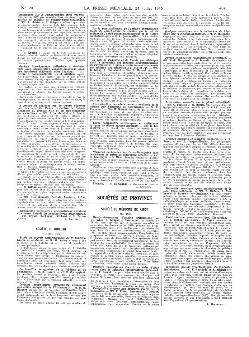 1945, Articles originaux. -