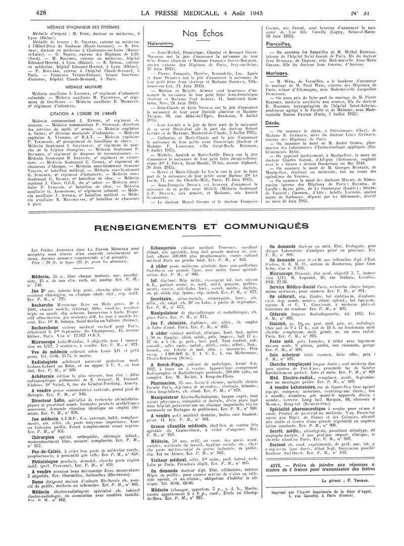 1945, Articles originaux. -