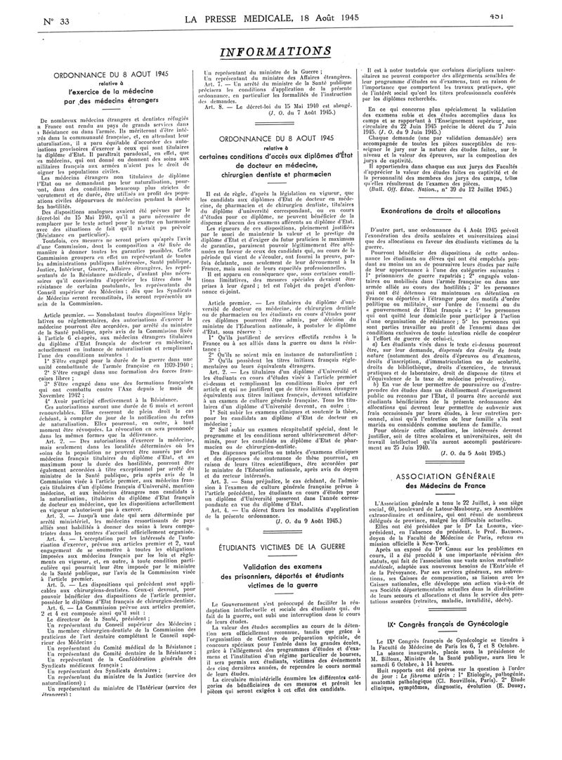 1945, Articles originaux. -