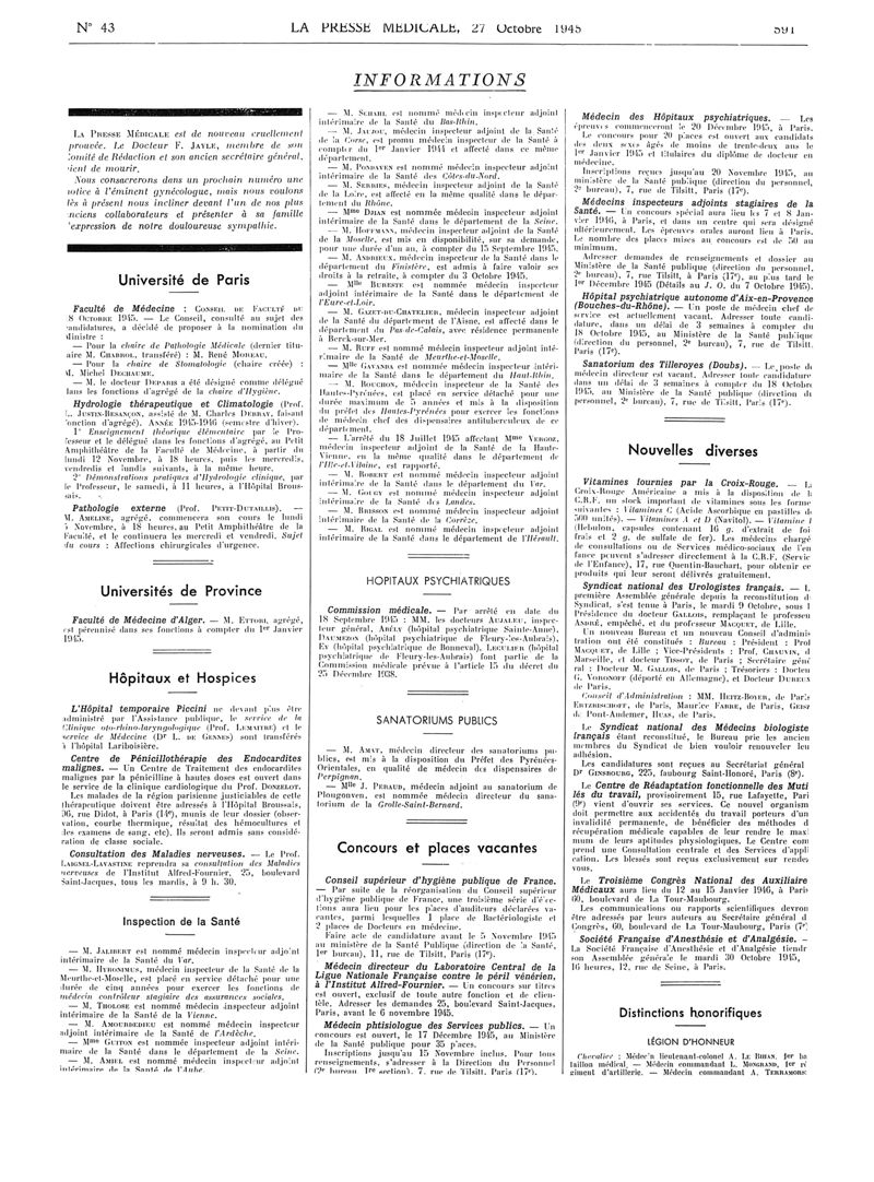 1945, Articles originaux. -
