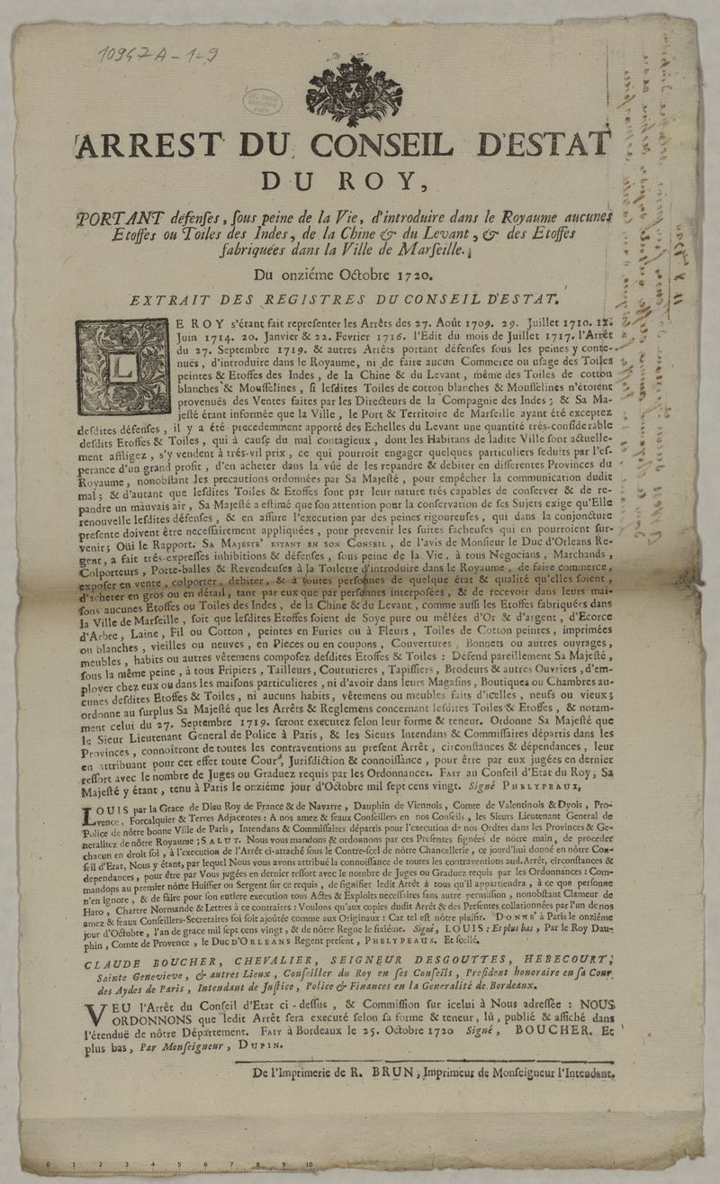 De l'imprimerie de R. Brun, imprimeur de Monseigneur l'intendant,