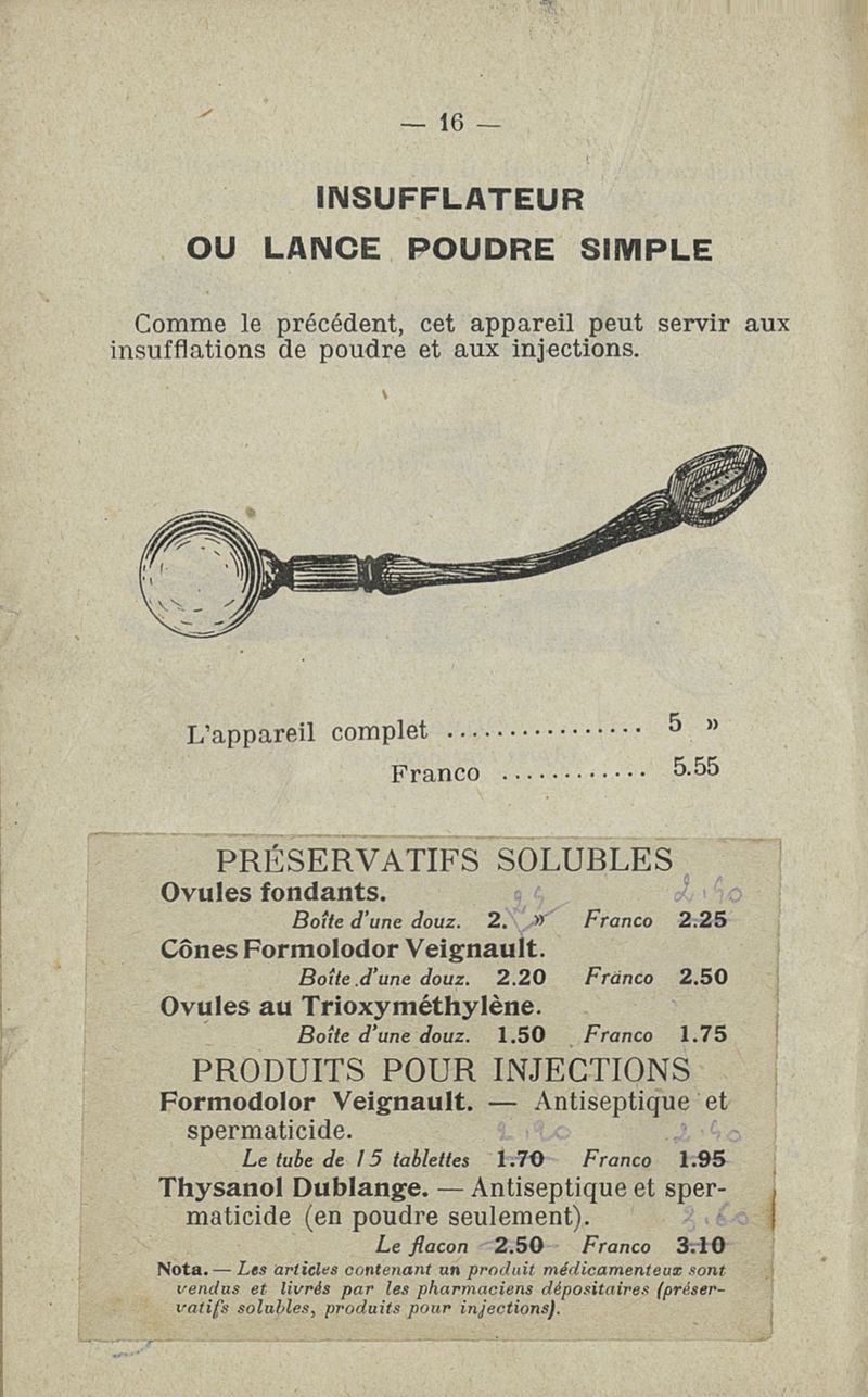 Appareils et accessoires d'hygiène sexuelle et de prophylaxie anticonceptionnelle et antivénérienne Instruments de chirurgie et de gynécologie -- fournis en commission par M. l'Administrateur du "Malthusien"