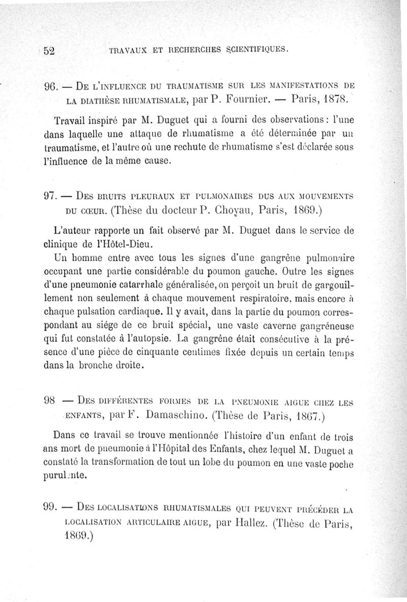 Exposé des titres et travaux scientifiques du Dr Duguet...candidat à l'Académie de médecine, section de pathologie médicale