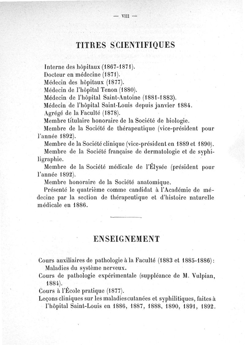 Notice sur les titres et travaux scientifiques