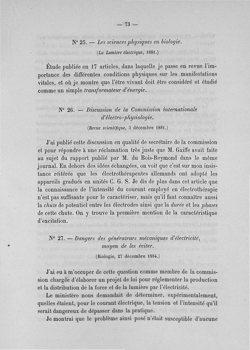 Exposé des titres et travaux scientifiques
