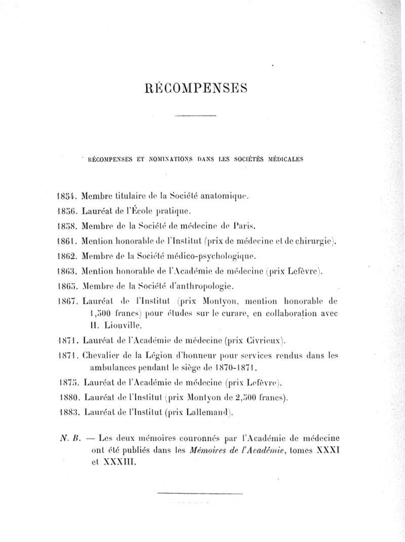 Exposé des titres et travaux scientifiques
