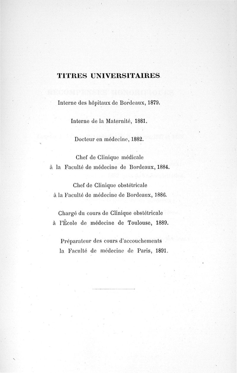 Exposé des titres et travaux scientifiques du Dr Chambrelent candidat à l'agrégation pour la Faculté de médecine de Bordeaux, section d'accouchements