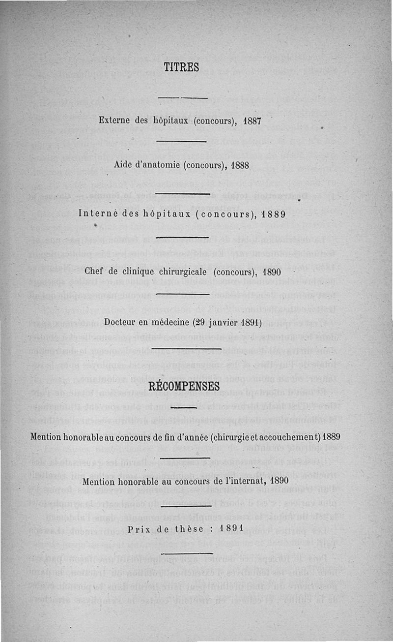 Titres et publications du Dr René Froelich chef de clinique chirurgicale, candidat à l'agrégation, section de chirurgie, pour la Faculté de médecine de Nancy