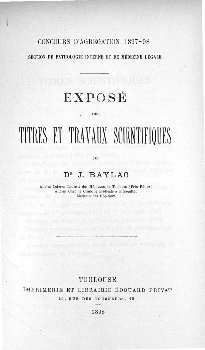 Exposé des titres et travaux scientifiques