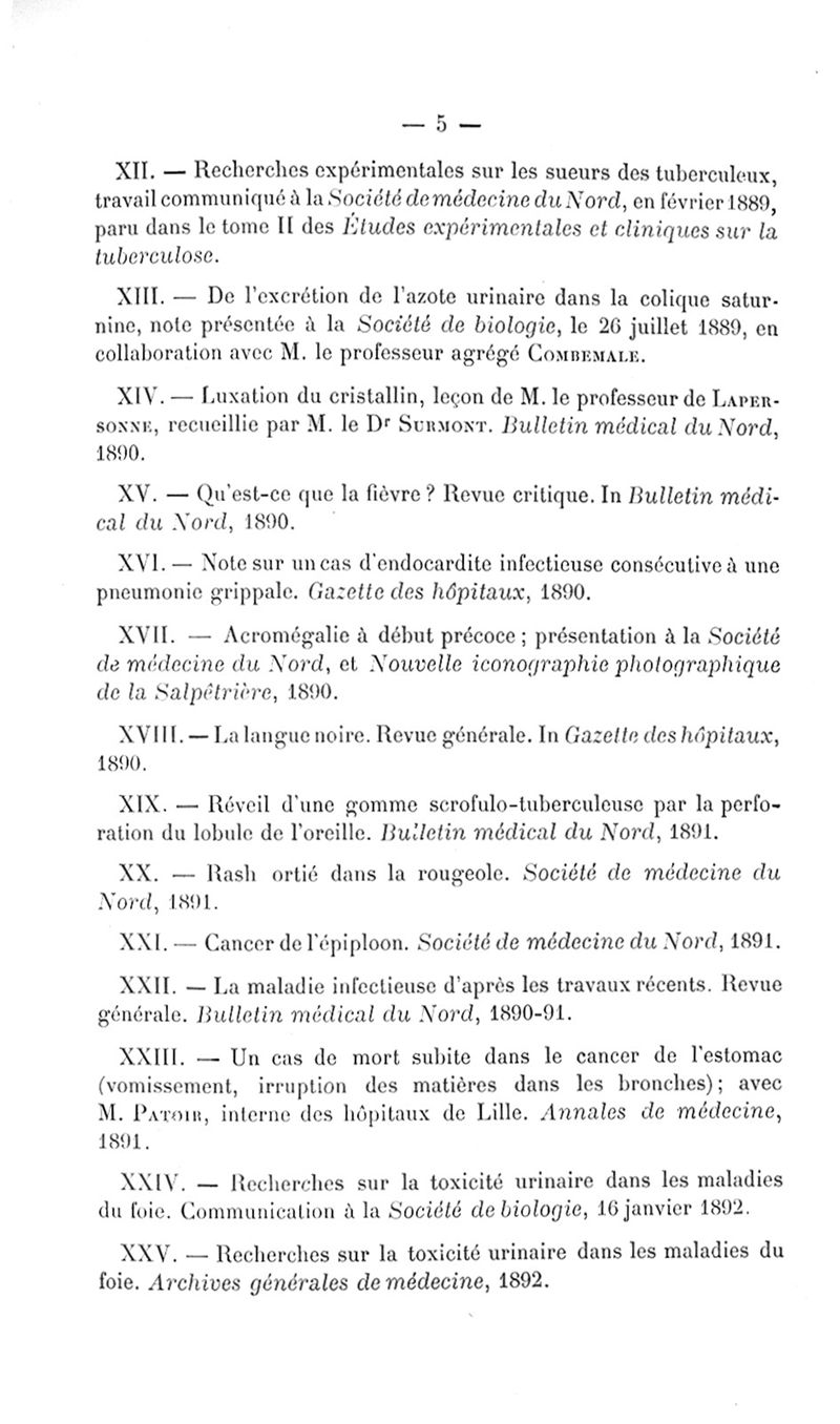 Exposé des titres et travaux scientifiques du Dr Surmont candidat à l'agrégation de médecine (Lille), section de pathologie interne et de médecine légale, concours du 4 janvier 1892