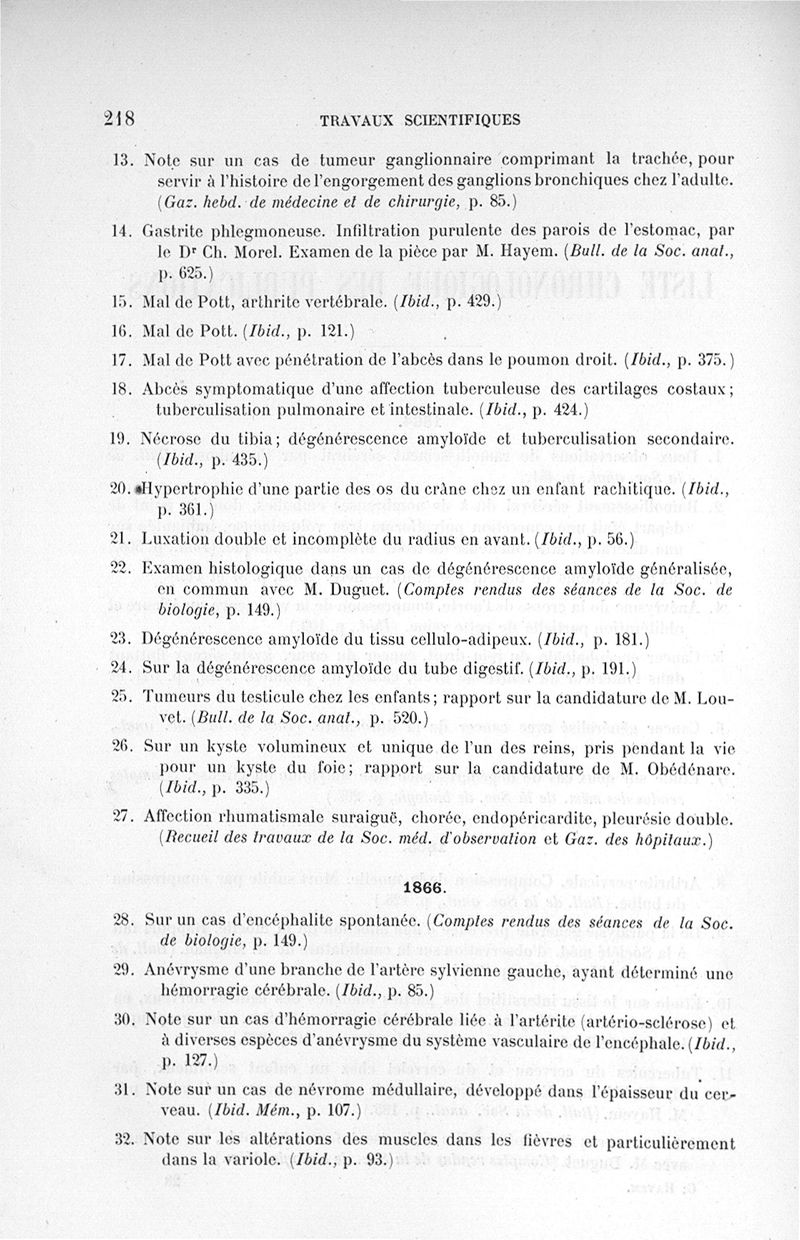 Notice sur les titres et travaux scientifiques