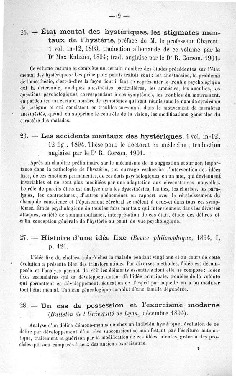 Notice sur les titres et travaux scientifiques de M. Pierre Janet,...candidat à l'Académie de médecine, section des membres associés libres