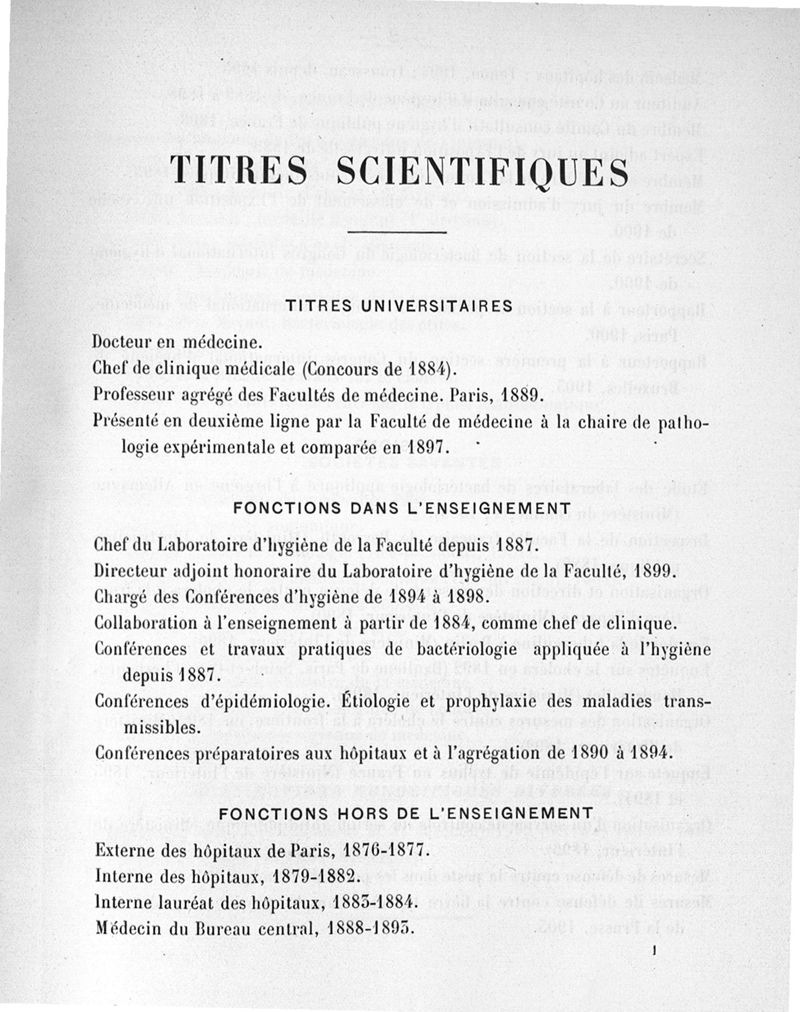Exposé des titres et travaux scientifiques