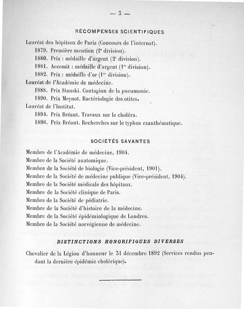 Exposé des titres et travaux scientifiques