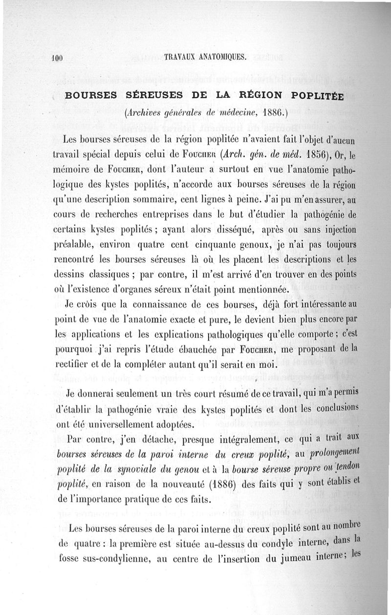 Titres anatomiques et travaux d'anatomie