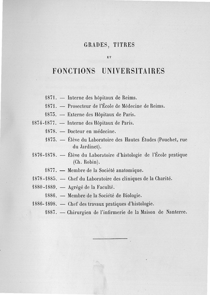 Notice sur les titres et travaux scientifiques