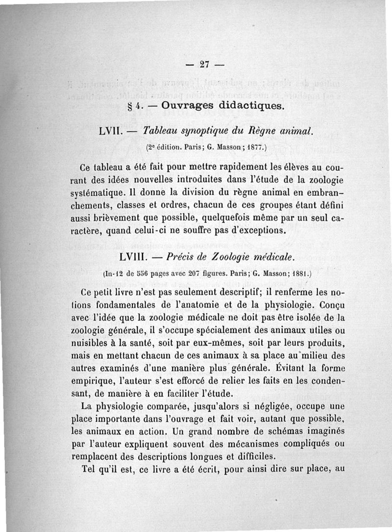 Paris, G. Masson, 1885.