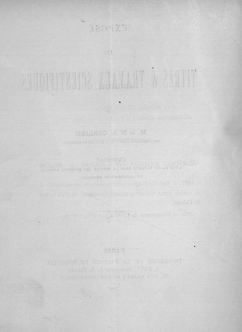 Exposé des titres et travaux scientifiques de M. le Dr A. Corlieu bibliothécaire-adjoint à la Faculté de médecine, candidat à une place vacante dans la section des membres associés de l'Académie de médecine