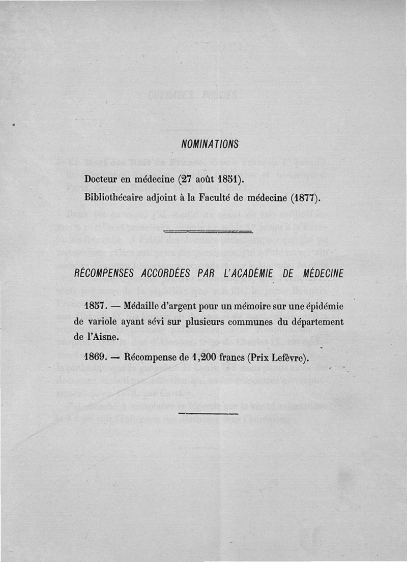 Exposé des titres et travaux scientifiques de M. le Dr A. Corlieu bibliothécaire-adjoint à la Faculté de médecine, candidat à une place vacante dans la section des membres associés de l'Académie de médecine