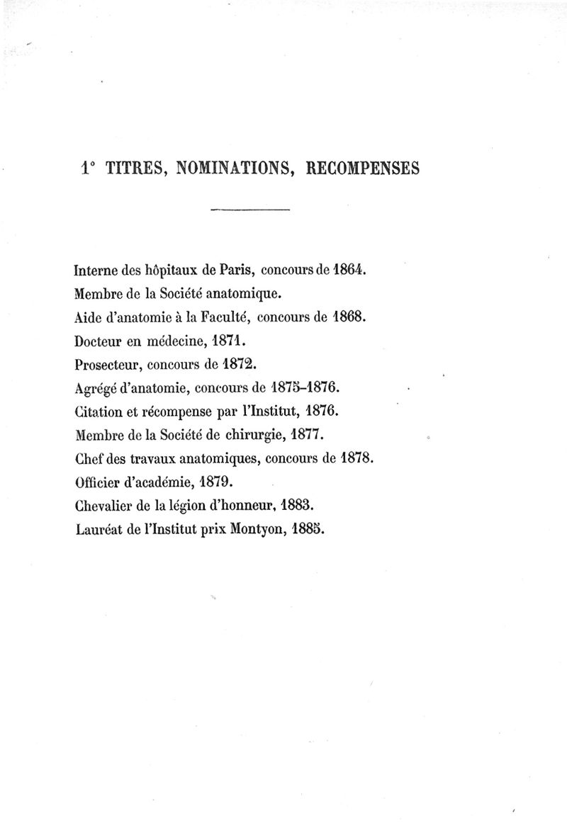 Exposé des titres et travaux scientifiques