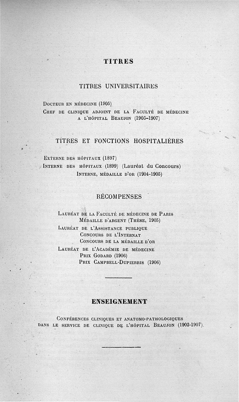 Exposé des titres et travaux scientifiques