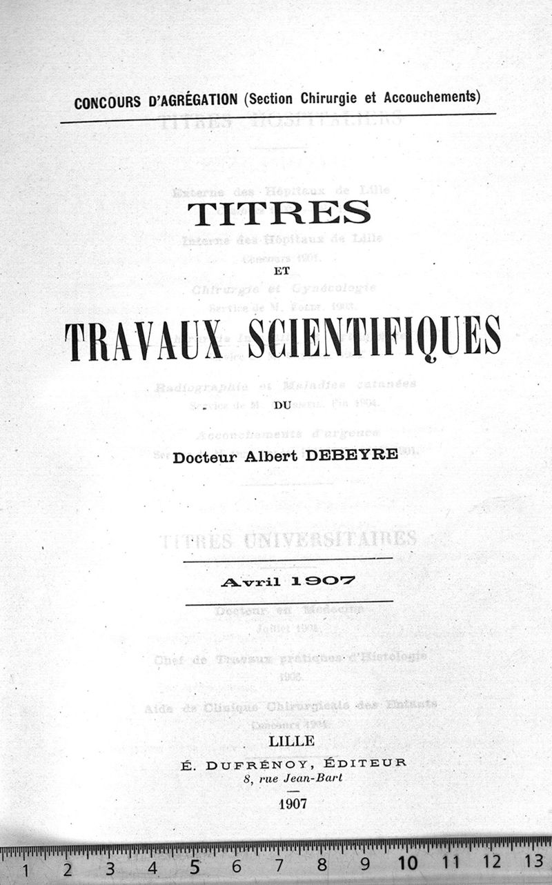 Concours d'agrégation, section chirurgie et accouchements. Titres et travaux scientifiques du Dr Albert Debeyre. Avril 1907