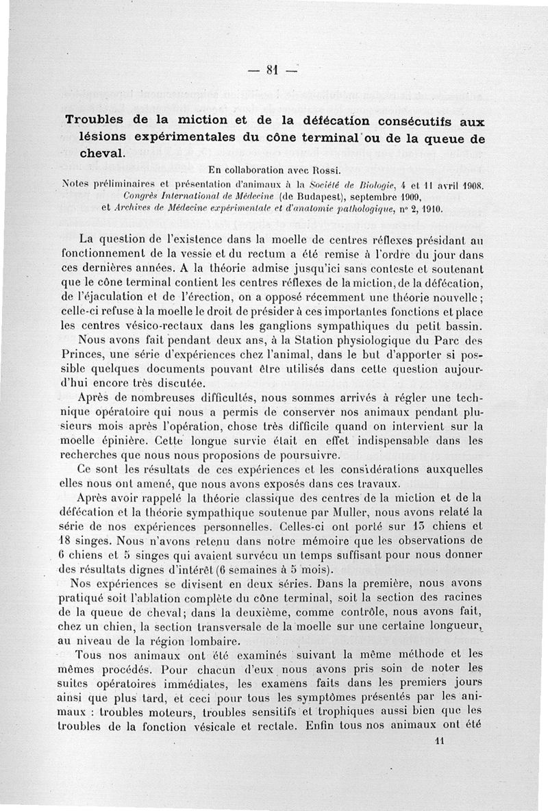 Paris, Masson et Cie, 1910.