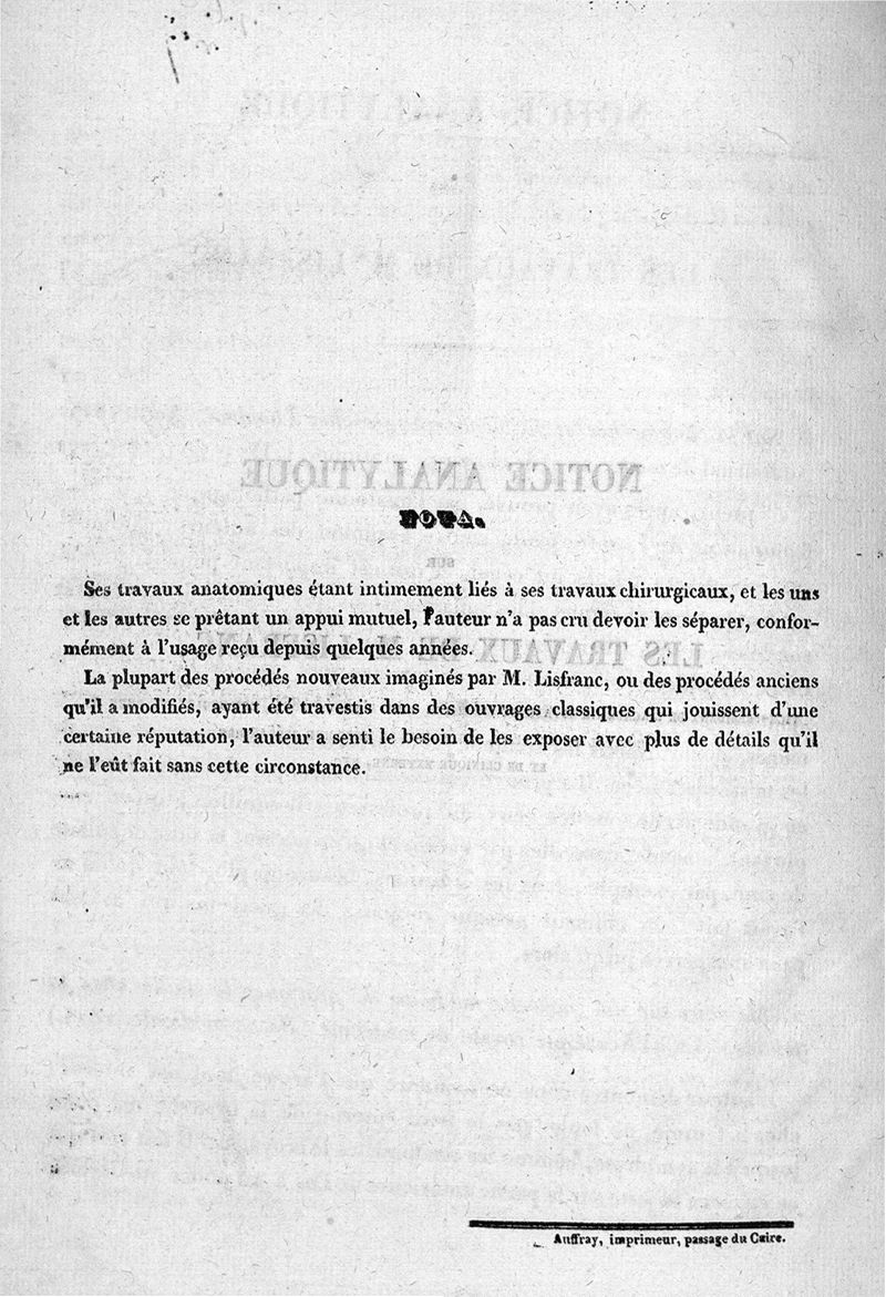 Notice analytique sur les travaux de Lisfranc