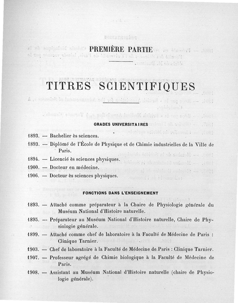 Notice sur les titres et travaux scientifiques