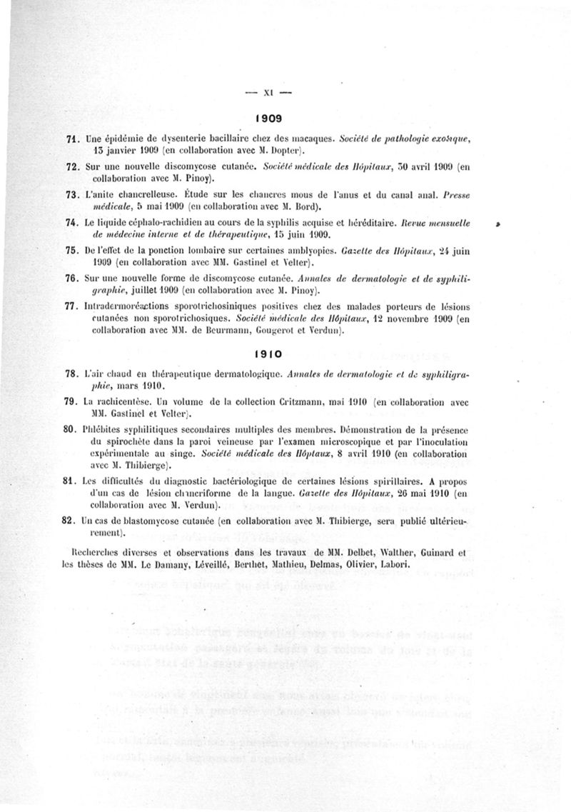 Titres et travaux scientifiques. Mai 1910