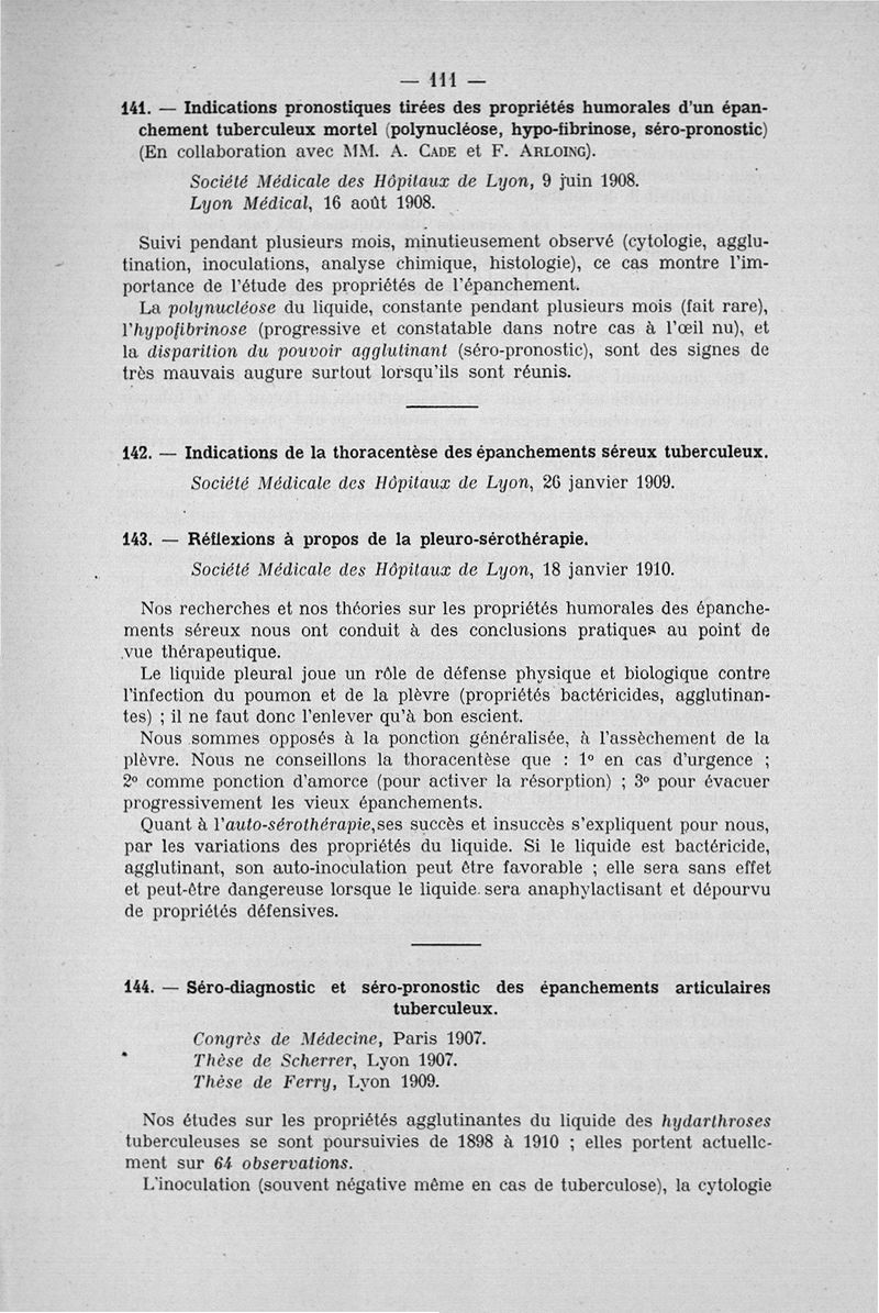 Titres et travaux scientifiques. Novembre 1910