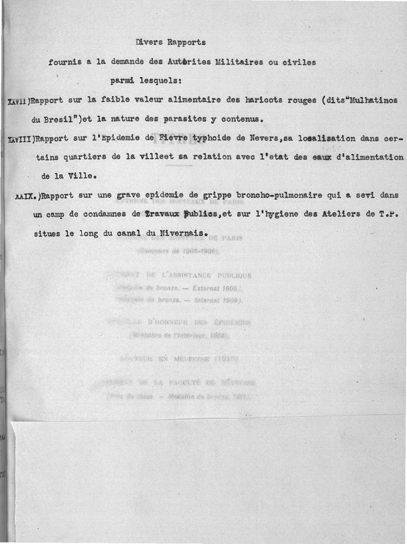 Titres et travaux scientifiques du Dr. René Bénard : mai 1913, avec supplément dactylographié (1920)