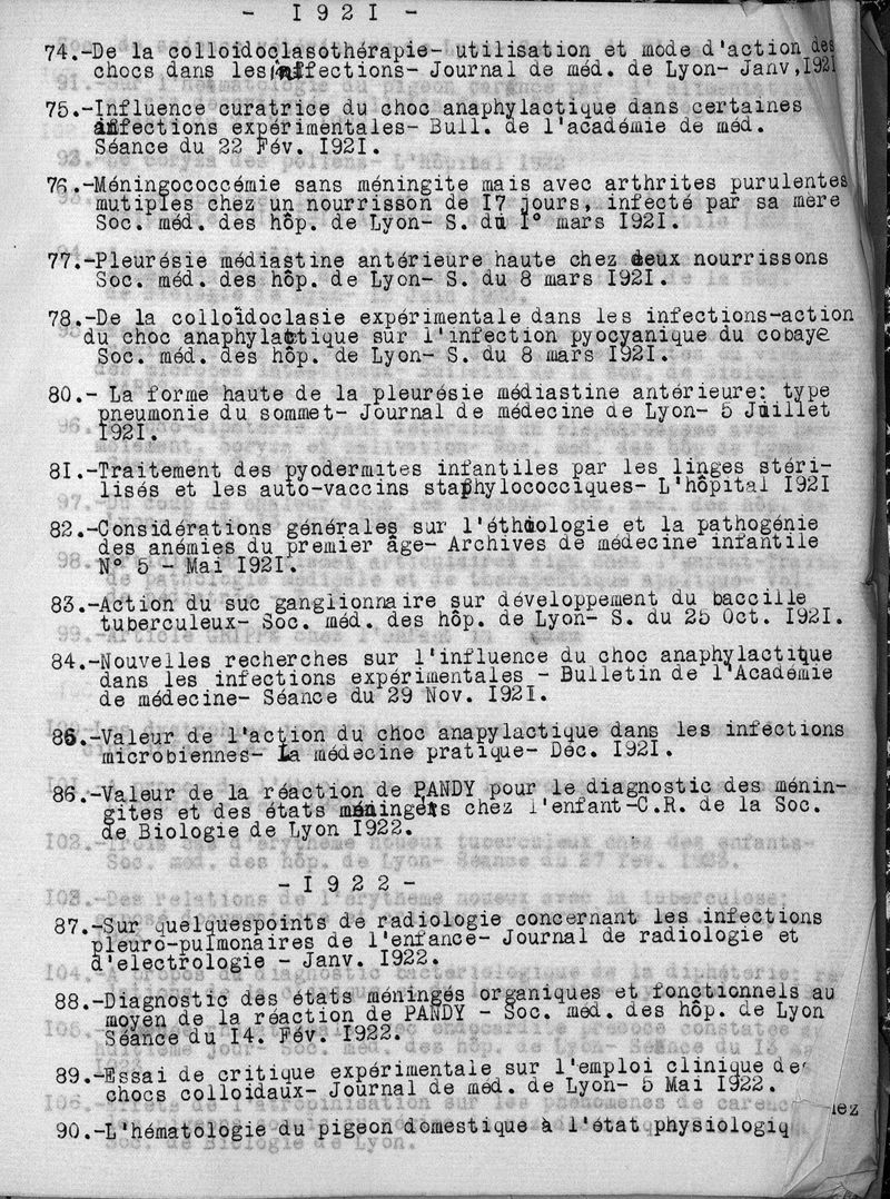 Exposé des titres depuis 1913. Addendum aux travaux