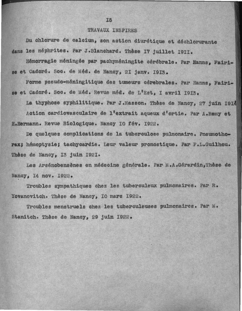Supplément à l'exposé des titres et travaux, 1910-1922