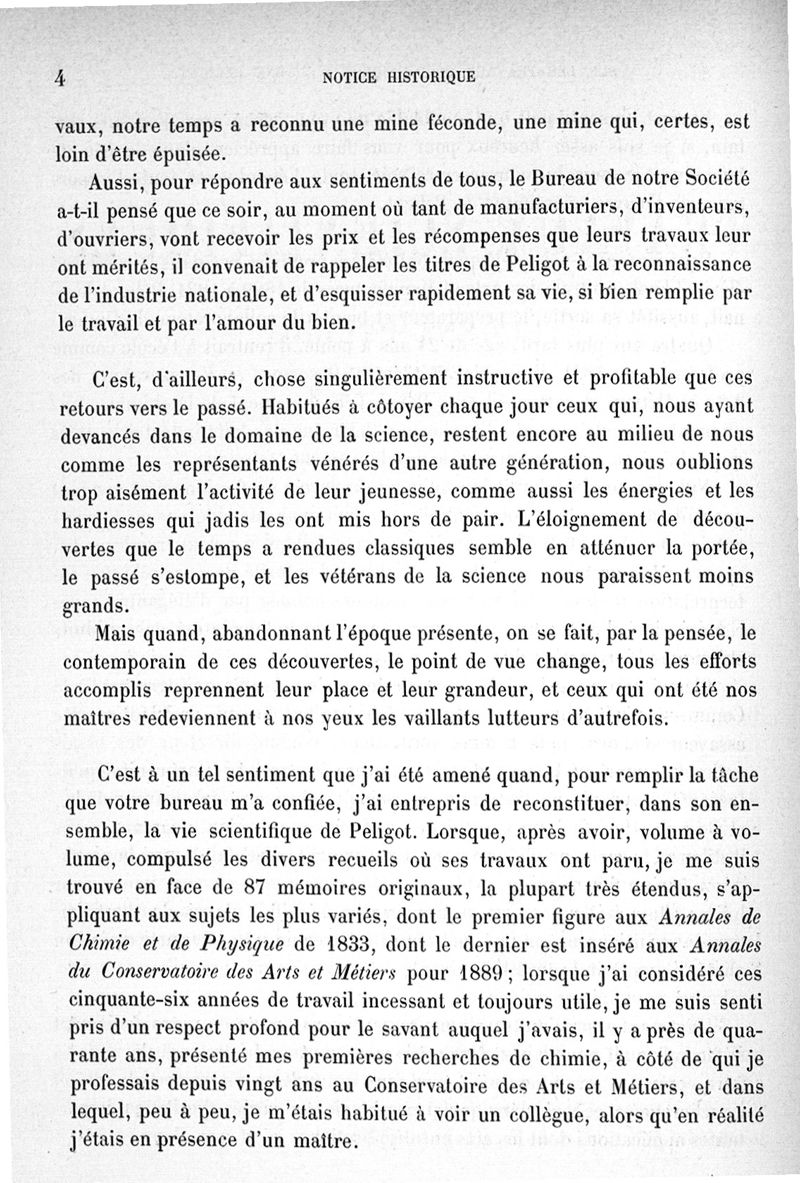 Société d'encouragement pour l'industrie nationale. Notice historique sur les travaux scientifiques de Eugène Peligot...lue à la séance générale du 13 juin 1890 par Aimé Girard...