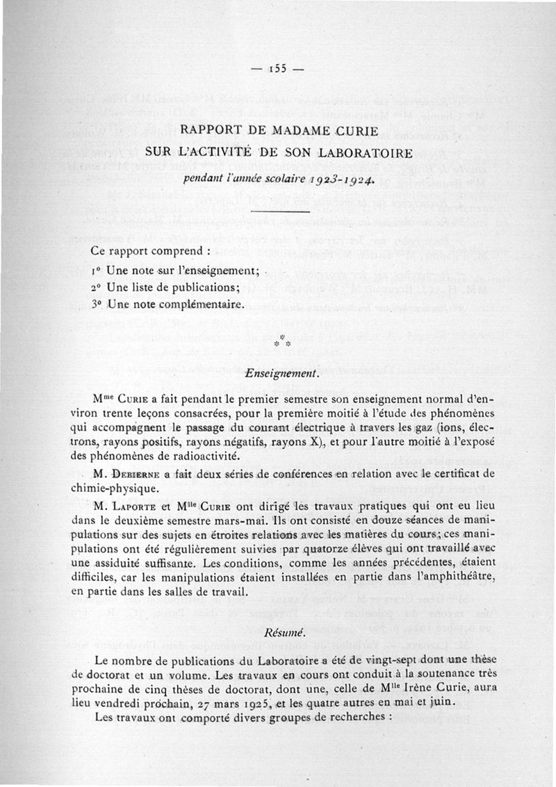 Exposé des travaux scientifiques