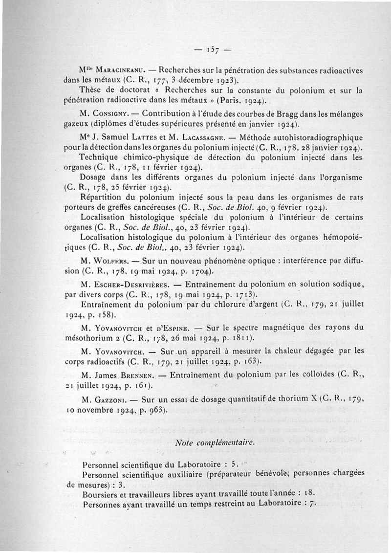 Exposé des travaux scientifiques